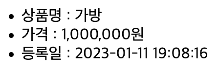 - 가격과 등록일에 적용한 Formatter가 적용되기 위해 {{ }} 사용