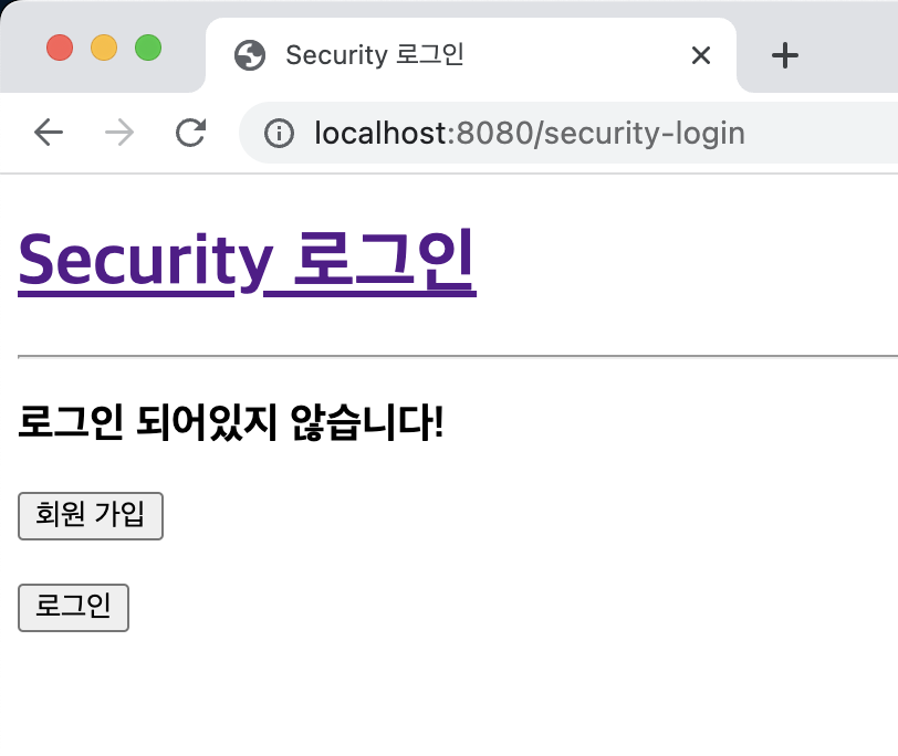 - POST /login 에 대한 요청을 security가 가로채서 로그인 진행해주기 때문에 우리가 직접 @PostMapping("/login") 을 만들지 않아도 됨