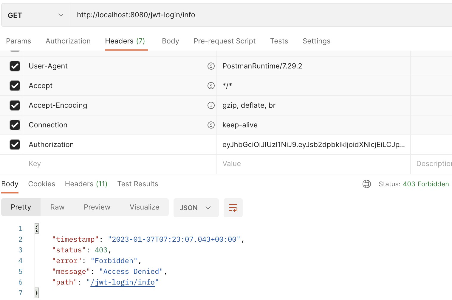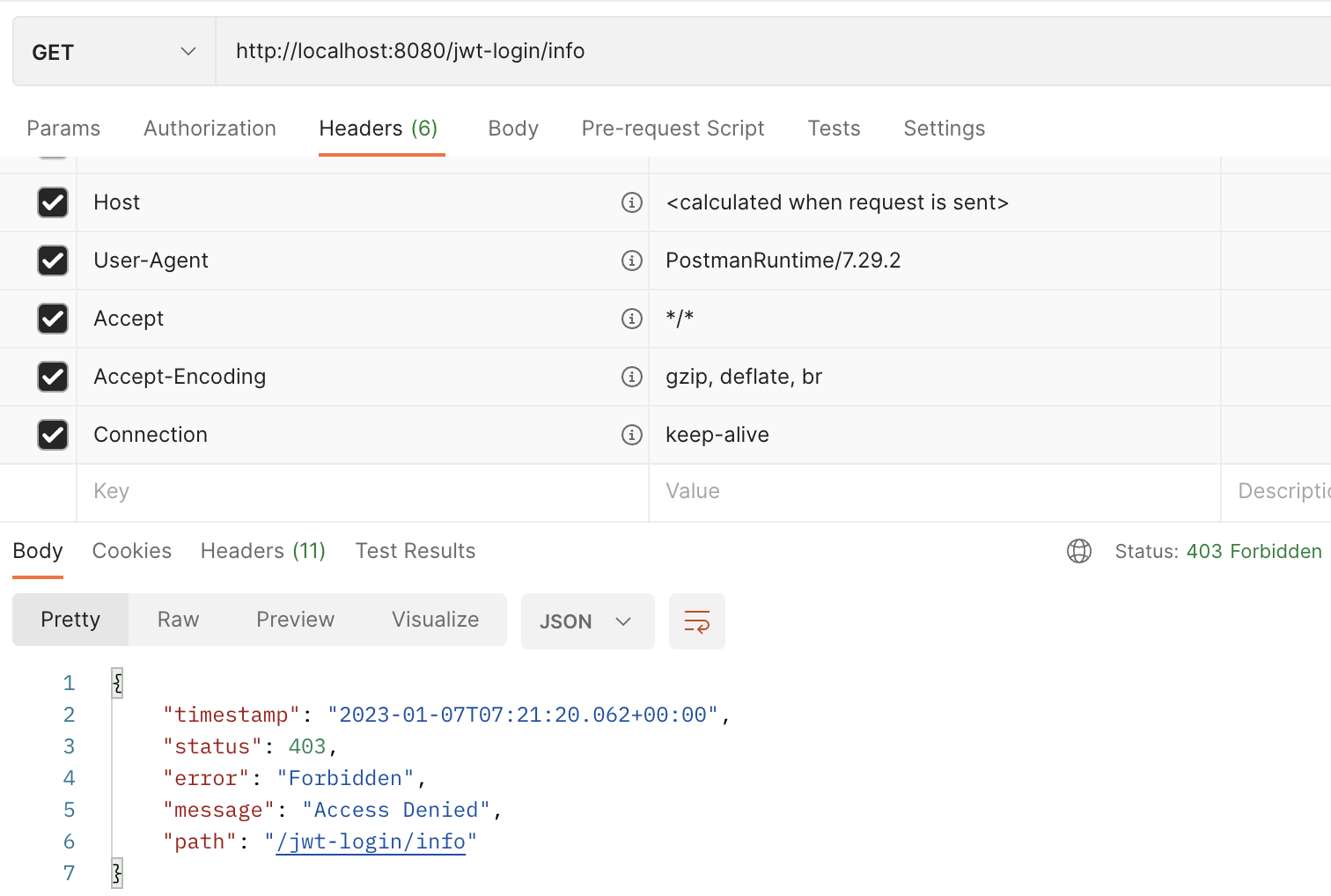 - 인증 실패 1. Header에 "Authorization"이 없는 경우(403 에러)