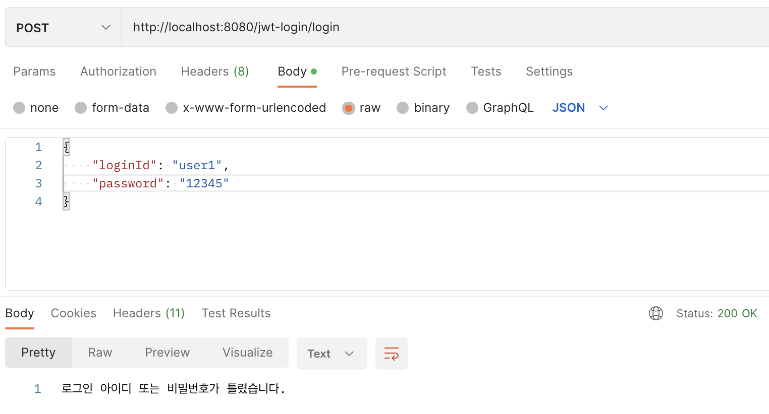return"로그인 아이디 또는 비밀번호가 틀렸습니다.";