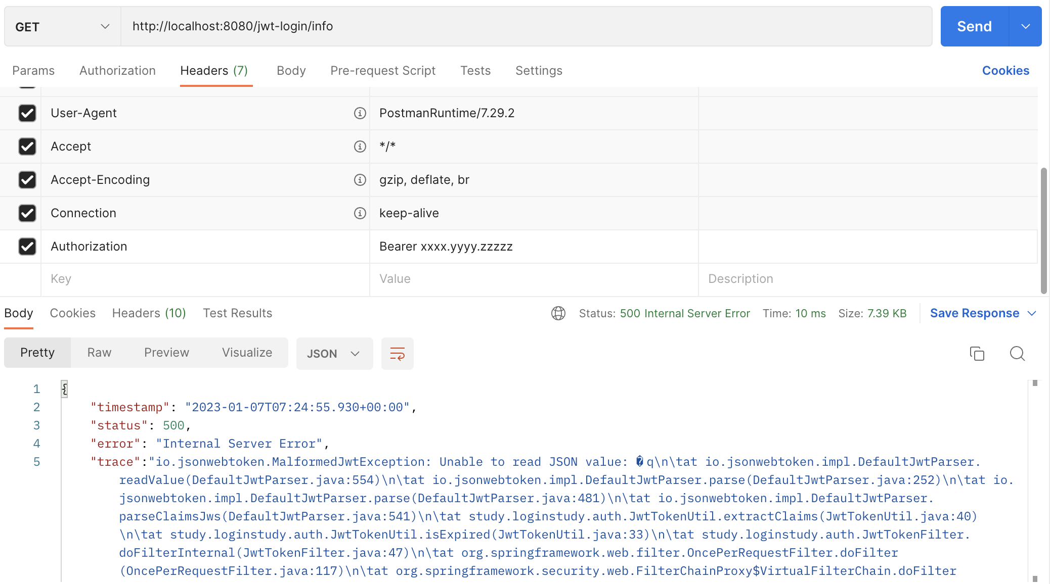 - 인증 실패 2. Jwt Token이 잘못된 경우(500 에러 => 에러 처리를 통해 403 에러로 만들어 줘야 함)