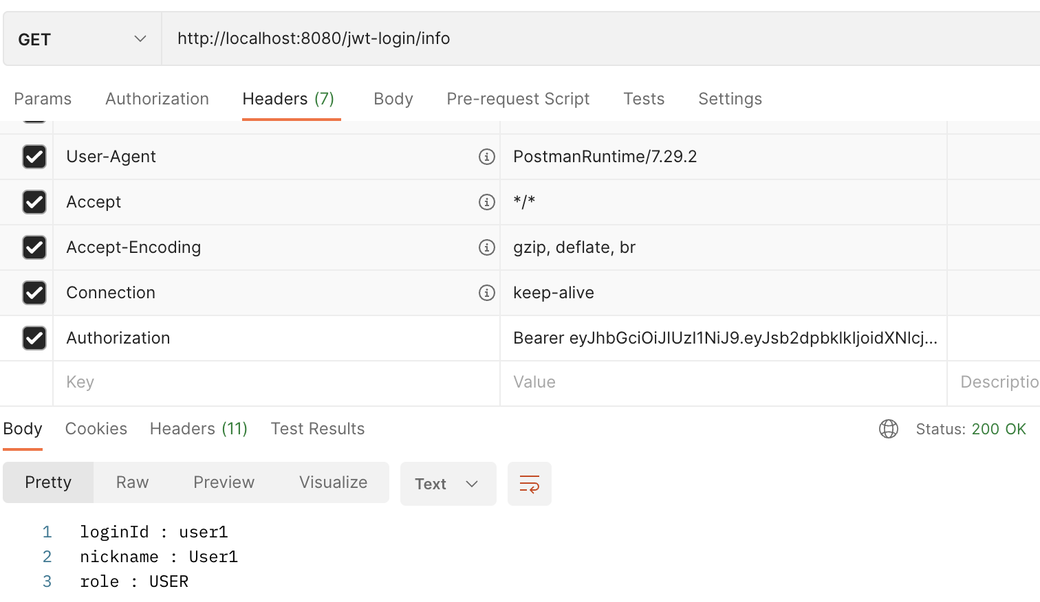 - ex) 발급받은 Jwt Token이 'xxxx.yyyy.zzzzz'라면