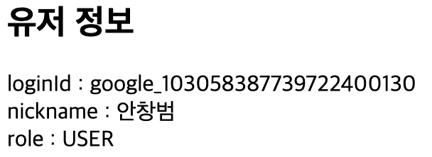 - nickname : 구글에 저장된 사용자 이름으로 설정