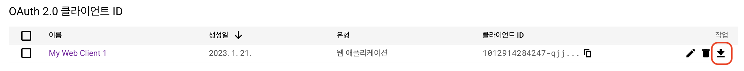- OAuth 클라이언트 ID 클릭