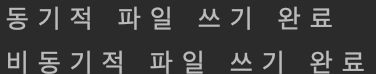 - 위의 파일 쓰기 코드에서 비동기식 작업을 먼저 써줬지만 동기식 작업이 먼저 끝난 이유는 비동기식 작업이 진행되는 동안 동기식 작업이 진행되었기 때문
