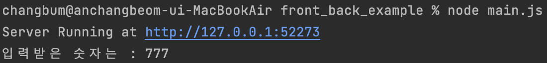 - front 서버에서 입력받은 숫자를 back 서버에서 제대로 출력함을 확인