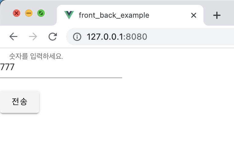 - 최대한 간단하게 하기위해 Front 서버에서 숫자를 입력받고 버튼을 누르면 그 숫자가 Back 서버로 전송되고, Back 서버에서는 그 숫자를 받고 잘 받았다는 메세지를 Front 서버에 전송하는 예제