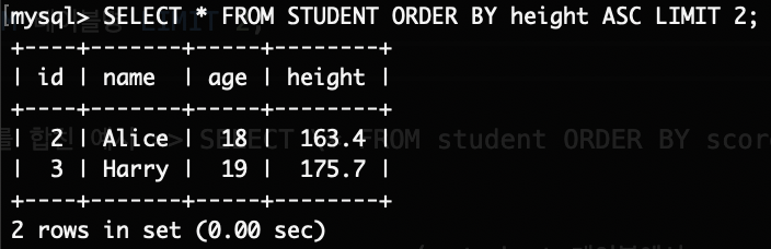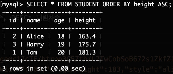 SELECT * FROM 테이블명 ORDER BY 필드이름 ASC/DESC;