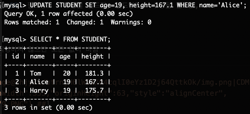 UPDATE 테이블명 SET 필드명1 = 수정될 필드값, 필드명2 = 수정될 필드값, ...