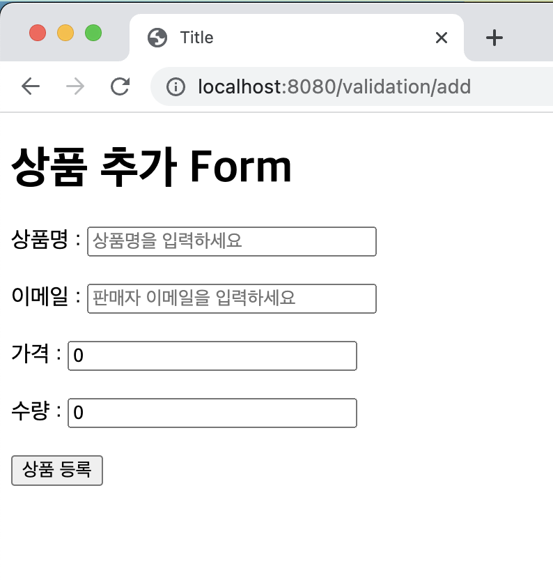 - validation이 있다면 입력을 마친 상품 등록 폼이 Controller에 전송 되었을 때 Controller에서 이 입력값들에 대한 validation을 진행함