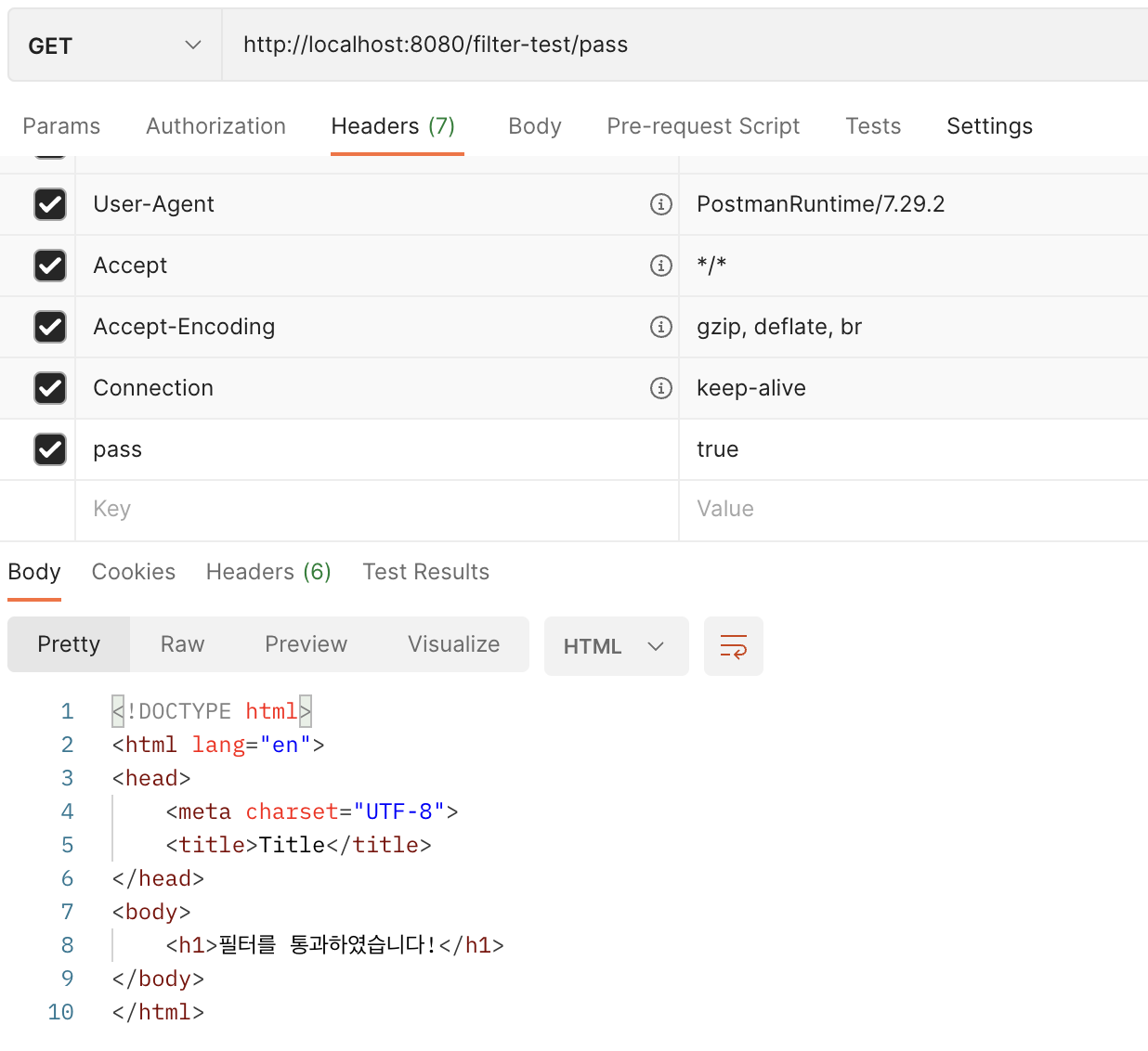 - Filter와 Interceptor에서 request.getHeader("pass")를 사용해 인증 기능을 구현해 보자
