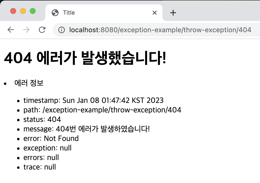- 위에서 만든 404.html 을 아래와 같이 수정 (Thymeleaf 사용)