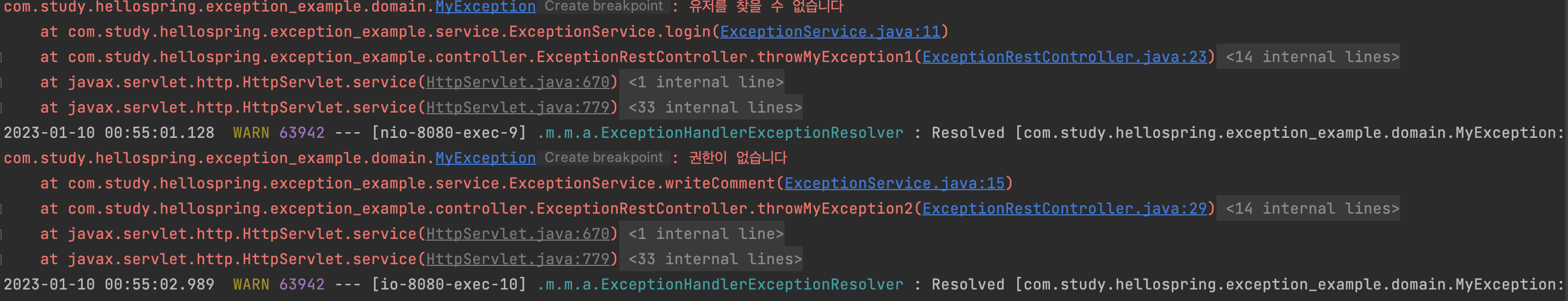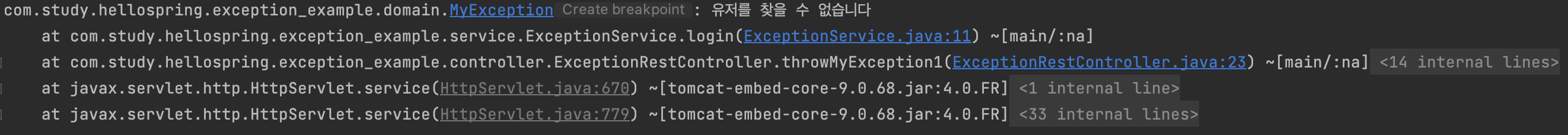 - Controller가 아닌 Service에서 exception이 발생한 상황을 가정